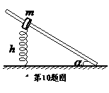 如图所示,固定的倾斜光滑杆上套有一个质量为m的圆环,圆环与竖直放置的轻质弹簧一端相连,弹簧的另一端固定在地面上的A点,弹簧处于原长h。让圆环沿杆滑下,滑到杆的底端时速度为零。则在圆环下滑过程中