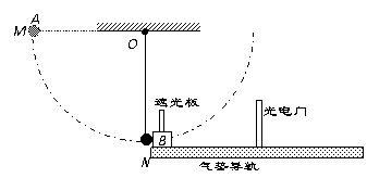 高一(9)班物理兴趣小组选用如图所示装置来 “验证机械能守恒定律”。将一段不可伸长的轻质小绳一端与力传感器(可以实时记录绳所受的拉力)相连固定在O点,另一端连接小钢球A,把小钢球拉至M处可使绳水平拉紧。在小钢球最低点N右侧放置有一水平气垫导轨、气垫导轨上放有小滑块B(B上安装宽度较小且质量不计的遮光板)、光电门(已连接数字毫秒计)。当地的重力加速度为g
