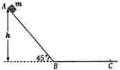 17. (14分) 如图所示,AB为斜轨道,与水平方向成45°角,BC为水平轨道,两轨道在B处通过一段小圆弧相连接,一质量为m的小物块,自轨道AB的A处从静止开始沿轨道下滑,最后停在轨道上的C点,已知A点高h,物块与轨道间的滑动摩擦系数为