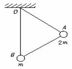 9、如图所示,长度相同的三根轻杆构成一个正三角形支架,在A处固定质量为2 m的小球,B处固定质量为m的小球,支架悬挂在O点,可绕过O点并与支架所在平面相垂直的固定轴转动.开始时OB与地面相垂直.放手后开始运动,在不计任何阻力的情况下,下列说法正确的是( )