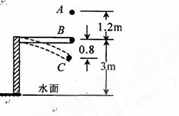 21、在跳水比赛中,有一个单项是“3m跳板”,比赛过程可简化为:运动员走上跳板,跳板被压缩到最低点,跳板又将运动员竖直向上弹到最高点,运动员做自由落体运动,竖直落入水中.将运动员视为质点,质量m=60kg,g=10m/s2.最高点A、跳板的水平点B、最低点C和水面之间的竖直距离如图所示.