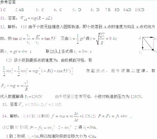 (1)小孩平抛的初速度(2)小孩运动到圆弧轨道最低点O时对轨道的压力。