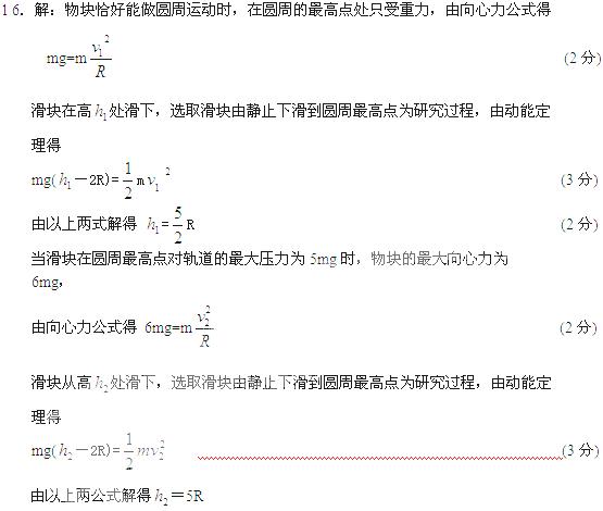 后沿圆形轨道运动.要求物块能通过圆形轨道最高点,且在该最高点与轨道间的压力不能