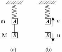 物体A和物体B用轻绳相连在轻弹簧下静止不动,如图所示,A的质量为m,B的质量为M。当连接A、B的绳突然断开后,物体A上升经