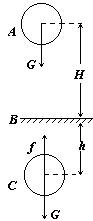 18.(7分) 如图所示,一球从高出地面H米处由静止自由落下,忽略空气阻力,落至地面后并深入地下h米处停止,设球质量为m,求:![]()
