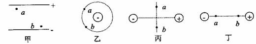 D.丁图:两个等量异种电荷连线上,与连线中点等距的a、b两点