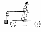 图为测定运动员体能的装置,轻绳拴在腰间沿水平线跨过定滑轮(不计滑轮的质量与摩擦),下悬重为G的物体。设人的重心相对地面不动,人用力向后蹬传送带,使水平传送带以速率v逆时针转动。则BC