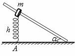 如图所示,固定的倾斜光滑杆上套有一个质量为m的圆环,圆环与竖直放置的轻质弹簧一端相连,弹簧的另一端固定在地面上的A点,弹簧处于原长h。让圆环沿杆滑下,滑到杆的底端时速度为零。则在圆环下滑过程中( )