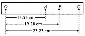 (8分)在用打点计时器验证机械能守恒定律的实验中,操作时,先通电再放纸带。质量m=1.00㎏的重物自由下落,打点计时器在纸带上打出一系列点.如图所示为选取的一条符合实验要求的纸带,O为第一个点,A、B、C为从合适位置开始选取的三个连续点(其他点未画出).已知打点计时器每隔0.02 s打一次点,当地的重力加速度g=9. 80m/s2.根据图上所得的数据,应取图中O点和B点来验证机械能守恒定律,则:(结果取3位有效数字)