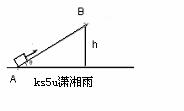 17.(10分)如图所示,斜面固定在水平面上,已知斜面倾角为θ=300,高为h=0.2m,一物体质量为m=0.5kg,从斜面底端的A点开始沿斜面向上滑行.不计摩擦和空气阻力。(g取10m/s2)求