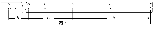 (2)实验打出的纸带,如图4所示,选取纸带上的连续的五个点A、B、C、D、E,测出A距起始点O的距离为s0,点AC间的距离为s1,点CE间的距离为s2,打点周期为T .