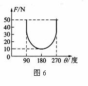 14、在同一质点上的两个力的合力F随两个分力夹角大小的变化情况如图6所示,则两力的大小分别是______N和______N