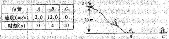 19.如图所示,某人乘雪橇从雪坡经A点滑至B点,接着沿水平路面滑至C点停止,人月雪橇的总质量为70kg,表中记录了沿坡滑下过长中的有关数据,请根据图表中的数据解决下列问题。