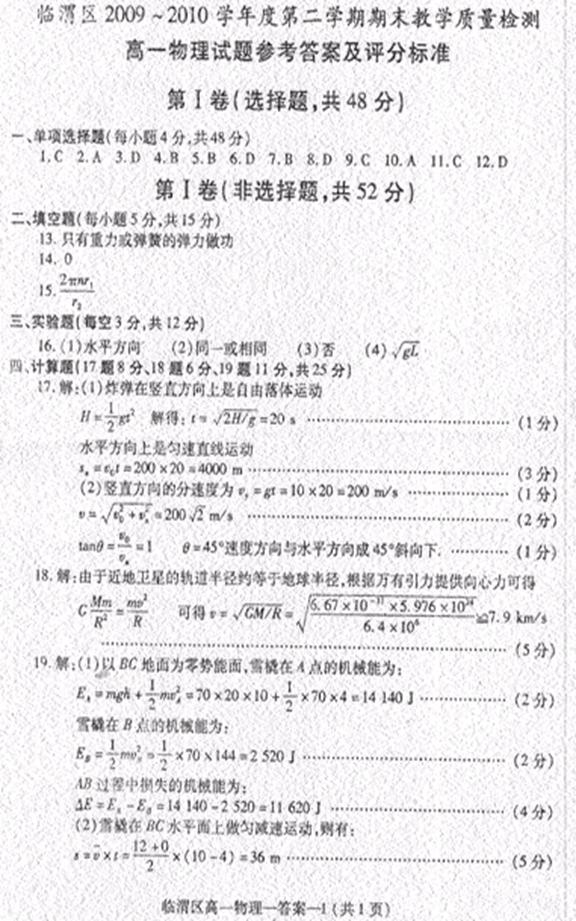 17.一架战斗机水平飞行的速度为200m/s,飞机距离地面的高度为2000m,求