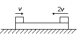 质量为m的长木板A静止在光滑水平面上,另两个质量也是m的铁块B、C同时从A的左右两端滑上A的上表面,初速度大小分别为v和2v,B、C与A间的动摩擦因数均为μ。⑴试分析B、C滑上长木板A后,A的运动状态如何变化?⑵为使B、C不相撞,A木板至少多长?