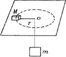 9..如右图所示,细绳一端系着质量M=0.6kg的物体,静止于水平面,另一端通过光滑小孔吊着质量m=0.3 kg的物体,M的中点与圆孔距离为0.2 m,并知M和水平面问的最大静摩擦力为2N.现使此平面绕中心轴线转动,问角速度ω在什么范围m会处于静止状态?(g=10m/s2)