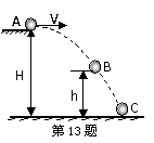 13.如图所示,质量为m的小球,从桌面边缘A处以初速度V离开高为H