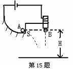 如图所示,小球A沿轨道滑下,离开轨道末端(末端水平)时撞开轻质接触式开关S,同时被电磁铁吸住的小球B自行脱落,改变距地面的高度H再重复几次。两球体积较小,密度较大。请回答下列两个问题:
