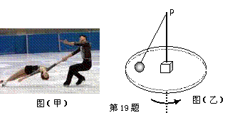19.(9分)如图(甲)所示的双人花样滑冰的物理学原理,可雷同与图(乙)所示的物理模型。在圆盘的正中心放置一方形底座,底座中央插一直杆,杆上P点系一轻绳,绳的另一端系一小球。小球质量为m,底座和杆的总质量为M,底座和盘的动摩擦因数为µ,