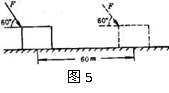 在光滑水平面上,一个人用100N的力与水平方向成60o角推一个箱子前进6m,如图5 所示,则推力所做的功是
