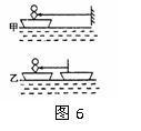 一个小孩站在船头,按图6两种情况用同样大小的力拉绳,经过相同的时间