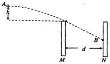 ,之后小球恰好从靠近M板上端处进入两板间,沿直线运动碰到N板上的B点,不计空气阻力,取
