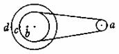 4. 如图所示为一皮带传动装置,右轮半径为r,a是它边缘上的一点,左侧是一轮轴,大轮的半径为4r,小轮半径为2r,质点b在小轮上,到小轮中心的距离为r,质点c和质点d分别位于小轮和大轮的边缘上,若在传动过程中,皮带不打滑,则( )