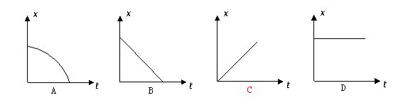 若以抛出点为起点,取初速度方向为水平位移的正方向,则在下图中,能正确描述做平抛运动物体的水平位移x随时间t变化关系的图象是( )