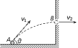 如图所示,在水平地面上的A点以速度v1射出一弹丸,方向与地面成θ角,经过一段时间,弹丸恰好以v2的速度垂直穿入竖直壁上的小孔B,不计空气阻力.下面说法正确的是( )