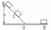 物体从A处开始沿光滑斜面AO下滑,又在粗糙水平面上滑动,最终停在B处。已知A距水平面OB的高度为