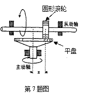 如图所示为一种“滚轮-平盘无极变速器”的示意图,它由固定于主动轴上的平盘和可随从动轴移动的圆形滚轮组成.由于摩擦的作用,当平盘转动时,滚轮就会跟随转动.如果认为滚轮不会打滑,那么主动轴转速n1、从动轴转速n2、滚轮半径r以及滚轮中心距离主动轴轴线的距离x之间的关系是