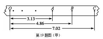 19.在验证机械能守恒定律的实验中,打点计时器接通电源后,释放质量m=1kg的重物,在纸带上打出了一系列的点,如图(甲)所示.O点为重物未下落时打出的点,相邻记数点间的时间间隔为0.02s,长度单位是cm,g取9.8m/s2.求:
