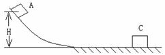 如图所示,滑块从光滑曲面轨道顶点A由静止滑至粗糙的水平面的C点而停止.曲面轨道顶点离地面高度为H.滑块在水平面上滑行的距离为S。求滑块与水平面之间的摩擦因数μ?