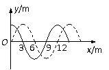 如图所示,一列横波沿x轴传播,实线和虚线分别是t1时刻和t2时刻波的图像.已知t2 = t1+1/8 s,振动周期是0.5s,则波的传播方向与传播距离是( )