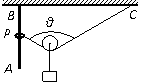 如图所示,长为l的细绳一端固定于天花板上的C点,另一端拴在套于杆上的可以沿杆AB上下滑动的轻环P上。吊有重物的光滑轻滑轮放在绳子上。在环P从与C等高的B点沿杆缓慢下滑的过程中,两段绳子之间的夹角θ的变化情况是( )