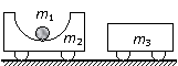 如图所示,质量为 m2 的小车上有一半圆形的光滑槽,一小球置于槽内,球的质量为 m1 ,二者以共同的速度