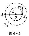 如图6-5所示,一双星A、B,绕它们连线上的一点做匀速圆周运动,其运行周期为T,A、B间的距离为L,它们的线速度之比