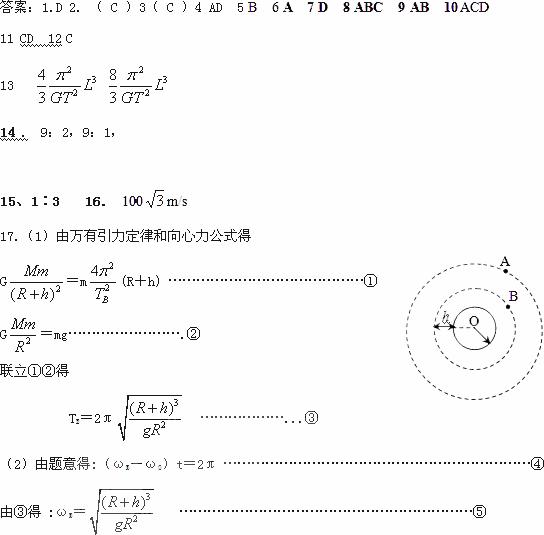 (2)如卫星B绕行方向与地球自转方向相同,某时刻A、B两卫星相距最近(O、B、A在同一直线上),则至少经过多长时间,他们再一次相距最近?