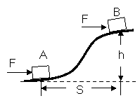 质量为 m的小车在水平恒力F推动下,从山坡底部A处由静止起运动至高为h的坡顶B,获得速度为