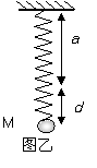 (2)苏青将玩具手枪中的弹簧拆出,量出其原长a=15cm,用这根弹簧悬挂一质量M=1.0kg的重物,弹簧伸长了d=4cm,如图乙所示,求这支玩具手枪弹簧的劲度系数k (g取10m/s2)