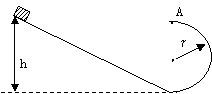 19.如图所示,质量m=100g的小物块,从距地面h=2.0m处的斜轨道上由静止开始下滑,与斜轨道相连的是半径r=0.4m的圆轨道。若物体运动到圆轨道的最高点A时,物块对轨道的压力恰好等于它自身所受的重力。求物块从开始下滑到A点的运动过程中克服阻力做的功多少?(g取10m/s2)