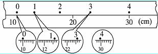 9.在练习使用打点计时器的实验中,得到了一条如图所示的纸带,其中0,1,2,3……是选用的计数点,每相邻两个计数点之间还有3个打出的点没有在图纸上标出。图中画出了将米尺靠在纸带上测量的情况,读出图中所测量点的读数分别是______、______、______和______;打第2个计数点时纸带的速度是______m/s。