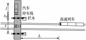 12.为了确保安全,在铁路与公路交叉口的道口处装有自动信号灯。当列车还有一段距离才到达公路道口时,道口应亮出红灯,警告未越过停车线的汽车迅速制动,已越过停车线的汽车赶紧通过。如果汽车通过道口的速度v2=36 km/h,停车线至道口栏木的距离x0=5 m,道口宽度x=26 m,汽车长l=15 m,并把汽车、火车的运动都看做匀速直线运动。若列车以v1=200 km/h的速度匀速行驶,问它离道口的距离L为多少时亮红灯,才能确保已越过停车线的汽车安全驶过道口?