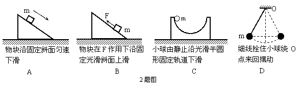 下图中物体m机械能守恒的是(均不计空气阻力):