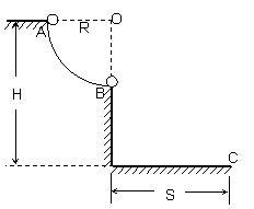 圆弧光滑轨道的A点,圆弧半径为R,OB沿竖直方向,上端A距地面高为H,现让小球从A点由静止释放,最后落在地面上C点处,不计空气阻力,求: