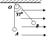 kg,B球带正电,现将绝缘细线通过O点的光滑定滑轮,将两球悬挂起来,B球处在水平向右的电场强度为E=2×104N/C的匀强电场中,两球平衡时,OA线竖直,OB线偏离竖直方向