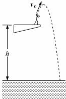 27.(7分)如图所示,质量m=50kg的跳水运动员从距水面高h=10m的跳台上以v0=5m/s的速度斜向上起跳,最终落入水中。若忽略运动员的身高。取g=10m/s2,求: