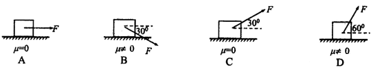 6.如图所示,力 F 大小相等,物体运动的位移s也相同,下列四种情况下力 F 做功最少的是( )