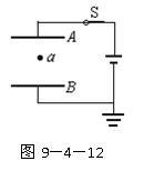 如图9-4-12所示,平行板电容器经开关S与电池连接,a处有一电荷量非常小的点电荷,S是闭合的,φa表示a点的电势,F表示点电荷受到的电场力.现将电容器的B板向下稍微移动,使两板间的距离增大,则