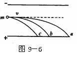 16、如图9-6所示,有三个质量相等,分别带正电、负电和不带电的粒子,从极板左侧中央以相同的水平速度v先后垂直地射入匀强电场中.分别落在正极板的a、b、c处,粒子所受重力不能忽略,则可知粒子a、b、c三个粒子在电场中的加速度有aa ab